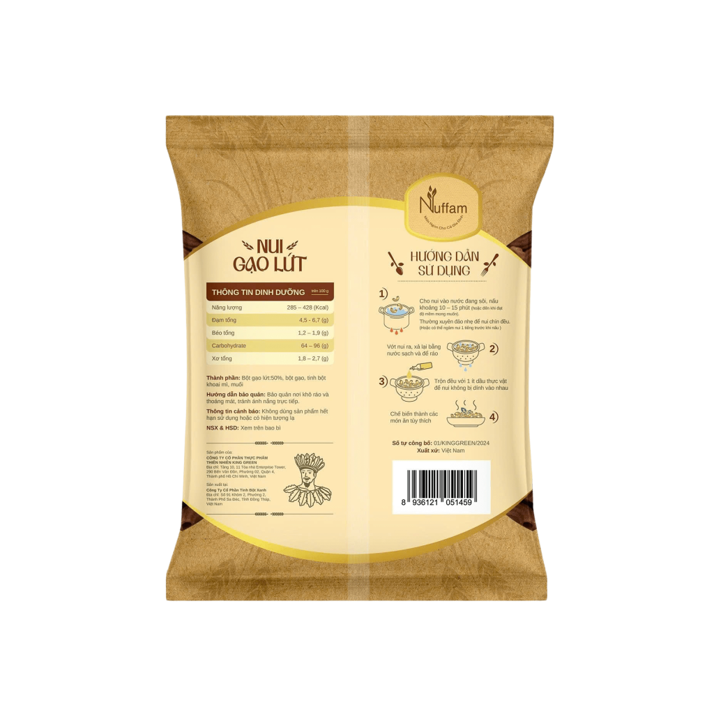 Thông tin dinh dưỡng của Nui Gạo Lứt Nuffam: